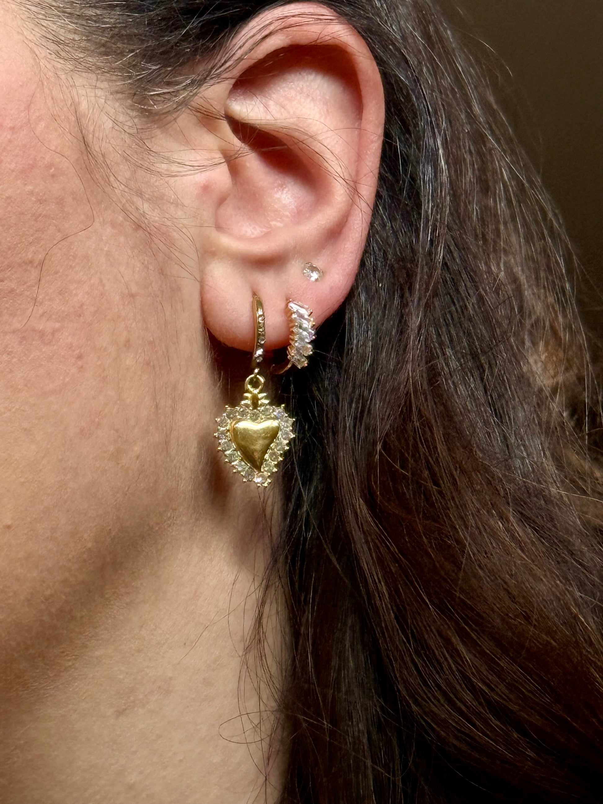 Orecchini a cerchietto con ciondolo cuore sacro, perfetti per chi ama unire stile e spiritualità. Un gioiello dal significato profondo che aggiunge un tocco di eleganza e protezione al tuo look.